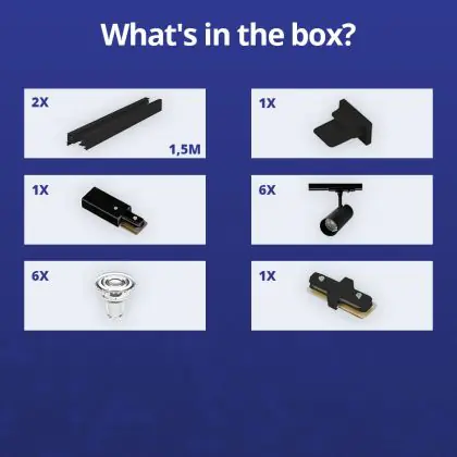 Manufacturer Name | Complete Straight 3-meter 1-Phase Track Set Black incl. 6x Spot fixture + GU10 2700K 3W Dim – 2x 1.5 | |