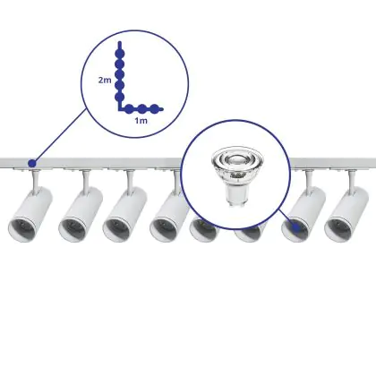 Complete Set 1-Phase Rail L 1 x 2 Meter White | incl. 8x Spot + GU10 2700K 3W Dimmable + End Cap, Power Connector and L -Connector