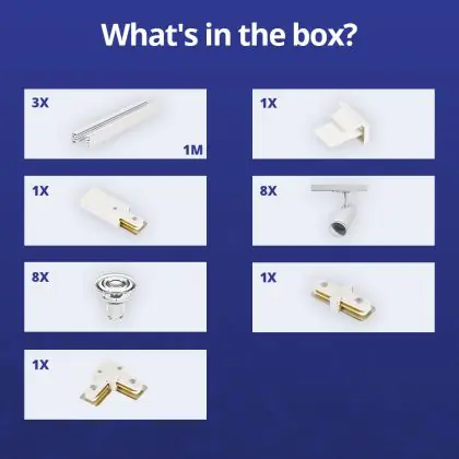 | Manufacturer Name | Complete L shaped 1-Phase Track Set White incl. 8x Spot fixture + GU10 2700K 3W Dim – 1 x 2 meters i | |