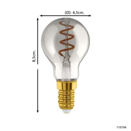 Eglo LED Ball E14 Filament Smokey 4W 100lm - 820 Extra Warm White | Dimmable - Replaces 15W