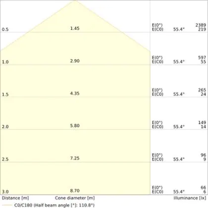 The Luminous Efficacy (lm/W) indicates how efficiently a light source uses energy. We divide the number of lumens by the wattage. The higher the number, the more efficient a product is in terms of energy consumption. LED lighting has a considerably higher lumen/Watt ratio than conventional lighting.