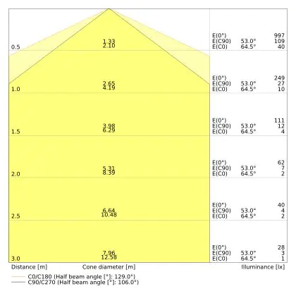 The number of lumens (lm) is the light output of a light source. The higher the number of lumens, the more light the light source emits. The wattage and the number of lumens are not connected to each other. An LED lamp with a low wattage can have a higher number of lumens than a conventional lamp with a high wattage.