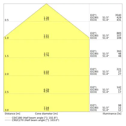 Beam angle of 100°