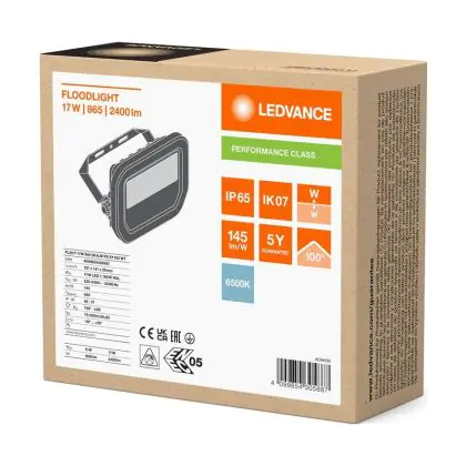 Ledvance LED Floodlight Aluminium White 17W 2400lm 100D - 865 Daylight | IP66 - Symmetrical