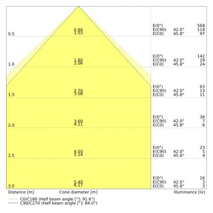 The number of lumens (lm) is the light output of a light source. The higher the number of lumens, the more light the light source emits. The wattage and the number of lumens are not connected to each other. An LED lamp with a low wattage can have a higher number of lumens than a conventional lamp with a high wattage.