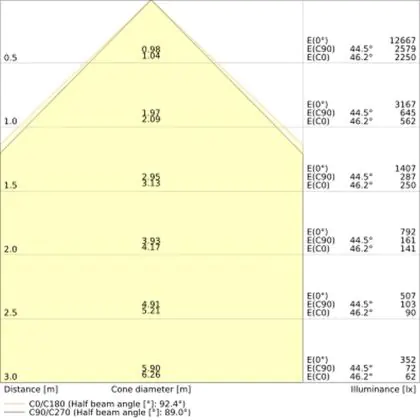 The colour code is a combination of colour rendering (CRI) and light colour (Kelvin). The first number indicates the colour rendering (1 = very poor colour rendering, 9 = maximum colour fastness). The second and third number contains the light colour. Example: the colour code 830 consists of good colour rendering (8) and warm white light (3000K). |