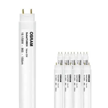 Multipack 10x Osram SubstiTUBE LED T8 Value (EM Mains) Standard Output 19.1W 2000lm - 865 Daylight | 150cm - Replaces 58W