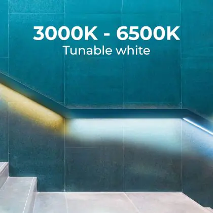 3. Tunable white: The white light can take any values in the listed Kelvin scale, for instance 2200K up to 6500K.