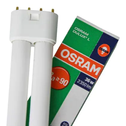 Osram DULUX L 36W/954 2G11 Lumilux DE LUXE Daylight! light bulbs are fluorescent 4 pin socket lamps that offer unprecedented reliability. They are characterized by an ultra long life span and optimum light performance for long length lighting. Early failures are reduced. They are used with electromagnetic or HF electronic control equipment.