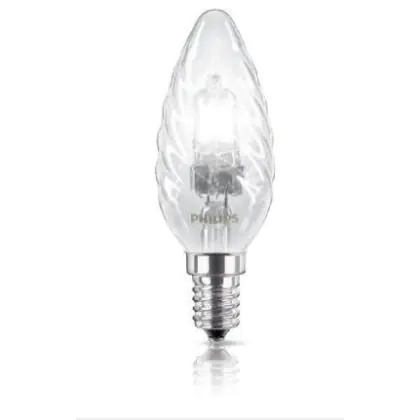 Philips EcoClassic Twisted Candle B35 are twisted flame-shaped halogen lamps. These lamps will replace your old incandescent lamps of comparable form. The lamps have a E14 base, and a BW35 shape.
