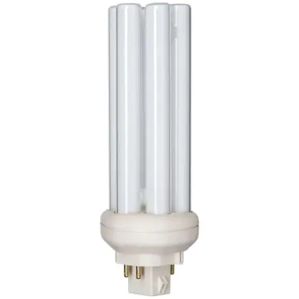 The Philips PL-T TOP 4P lamps are 4 pin socket fluorescent lamps that are very efficient for long run times. They are more efficient than 4P PL-T standard bulbs and their performance is optimized over wide temperature ranges. Each compact fluorescent lamp of this range has a base type GX24q-4 with 4 metal pins. Philips PL-T Xtra 42W 830 4P lamps have a size of 139 cm.