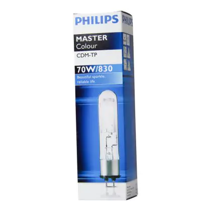 Philips CDM-TP 70W 830 PG12-2 have a warm light of a colour temperature of 3000K. The colour rendering index is also excellent, more than 80-89Ra.
